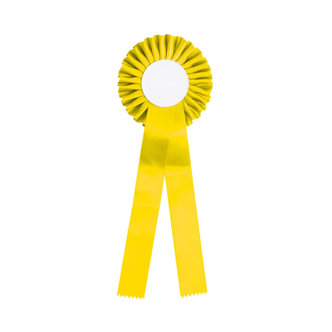 Coccarda In Raso Giallo Con Interno D.50Mm . Retro Spilla In Plastica
