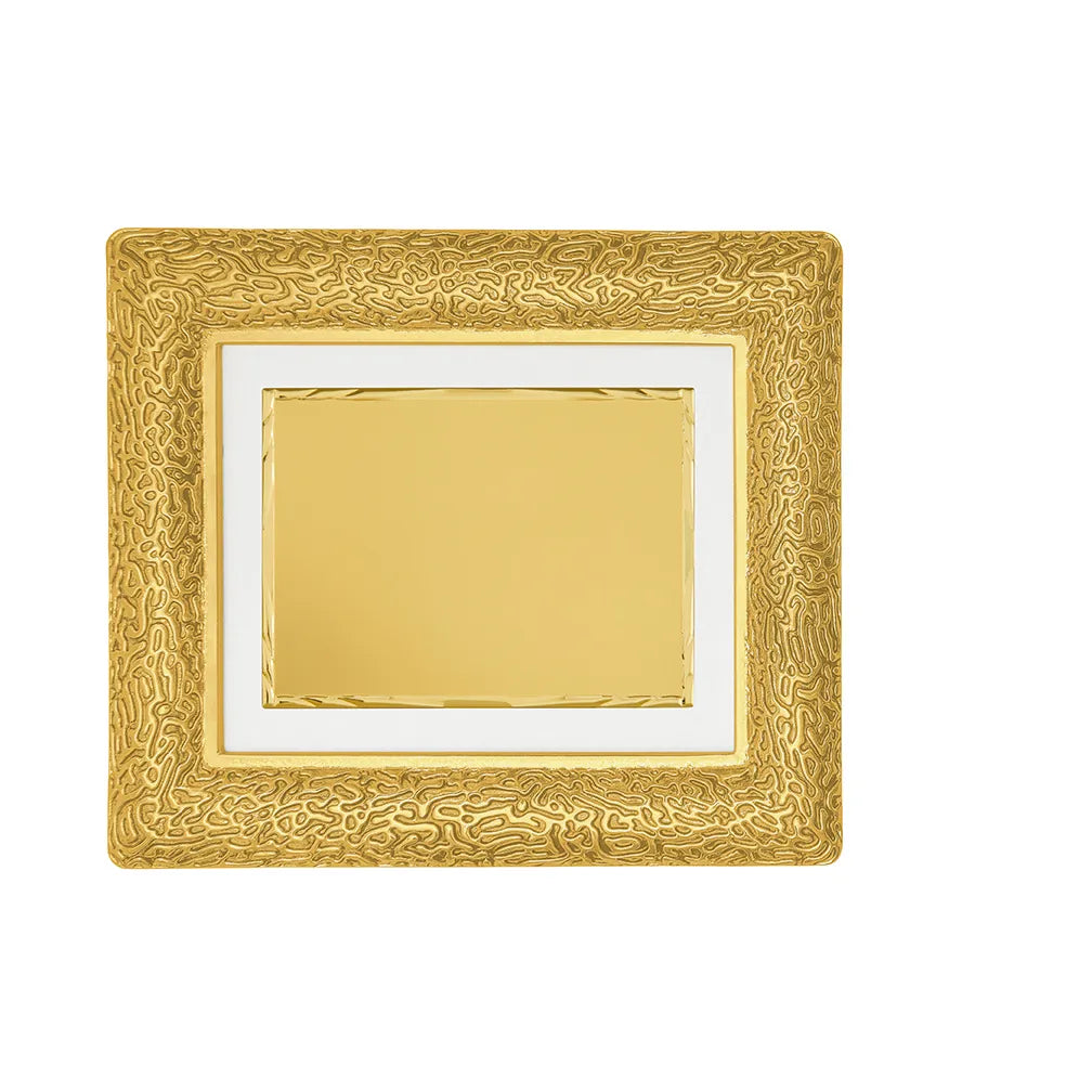 Cornice In Resina Porta Targa Finitura Oro. Fornita In Scatola Di Cartoncino Bianco Con Stampa Logo Argemy