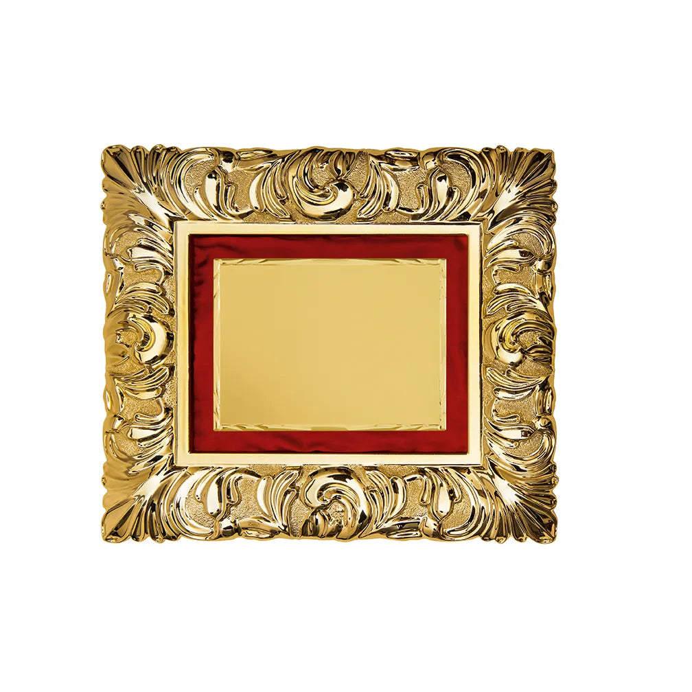 Cornice In Resina Porta Targa Finitura Oro Con Interno In Raso Rosso. Fornita In Scatola Di Cartoncino Bianco Con Stampa Logo Argemy