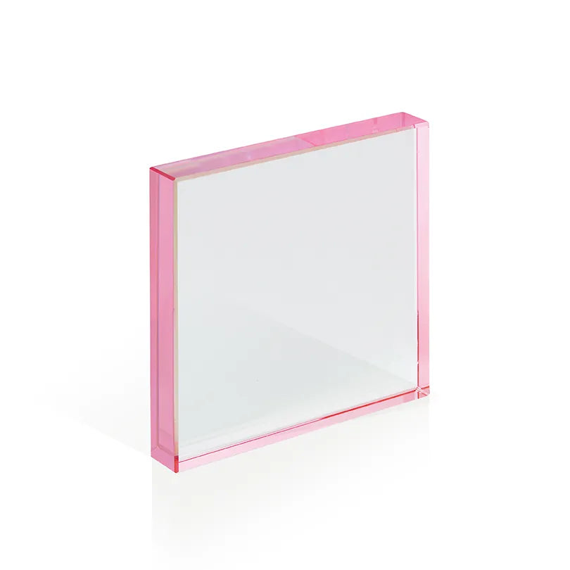 Fermacarte In Vetro Quadrato Con Bordo Rosa. Spessore 19Mm. Fornito Con Scatola Elegante