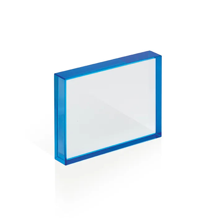 Fermacarte In Vetro Rettangolare Con Bordo Blu. Spessore 19Mm. Fornito Con Scatola Elegante