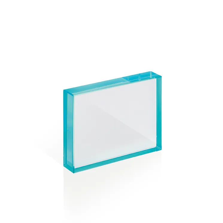 Fermacarte In Vetro Rettangolare Con Bordo Azzurro. Spessore 19Mm. Fornito Con Scatola Elegante