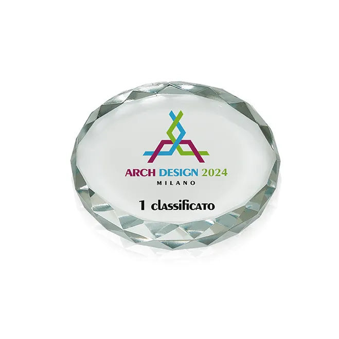 Fermacarte In Vetro Rotondo Con Bordo Sfacettato. Spessore 10Mm. Fornito Con Scatola Elegante