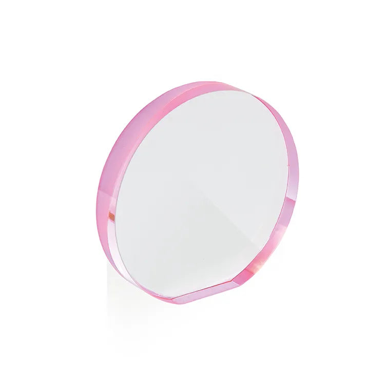 Fermacarte In Vetro Rotondo Con Bordo Rosa. Spessore 19Mm. Fornito Con Scatola Elegante