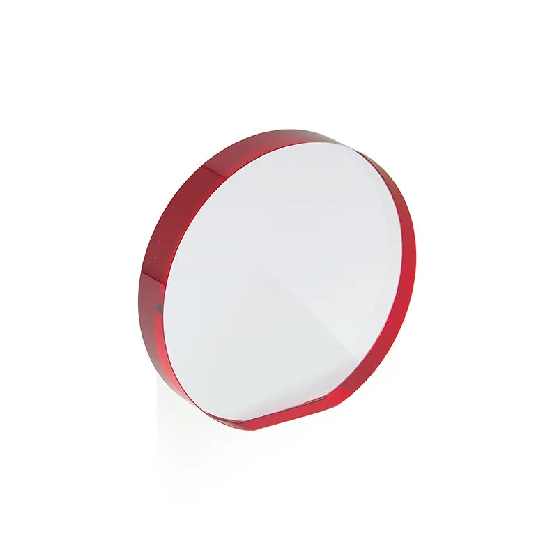 Fermacarte In Vetro Rotondo Con Bordo Rosso. Spessore 19Mm. Fornito Con Scatola Elegante