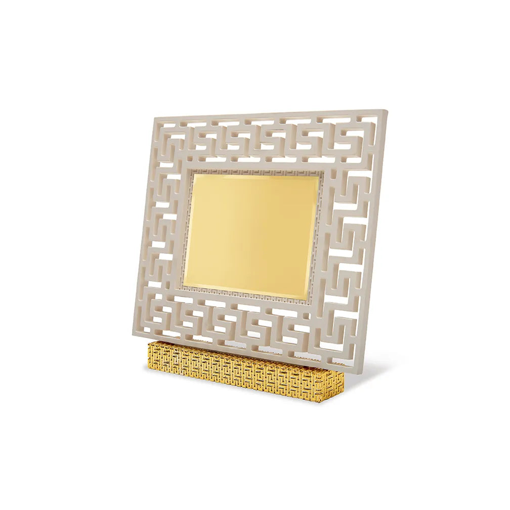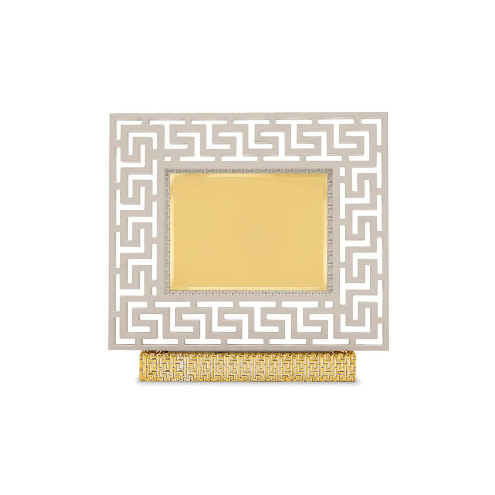 Cornice In Resina Porta Targa Finitura Oro E Bianco. Fornita In Scatola Di Cartoncino Bianco Con Stampa Logo Argemy
