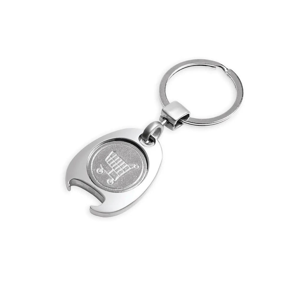 Portachiavi Modello K30 In Finitura Cromata , Con Inserto Da 24Mm E Nel Retro Gettone Per Carrello Della Spesa. Dentro A Scatola Regalo Nera