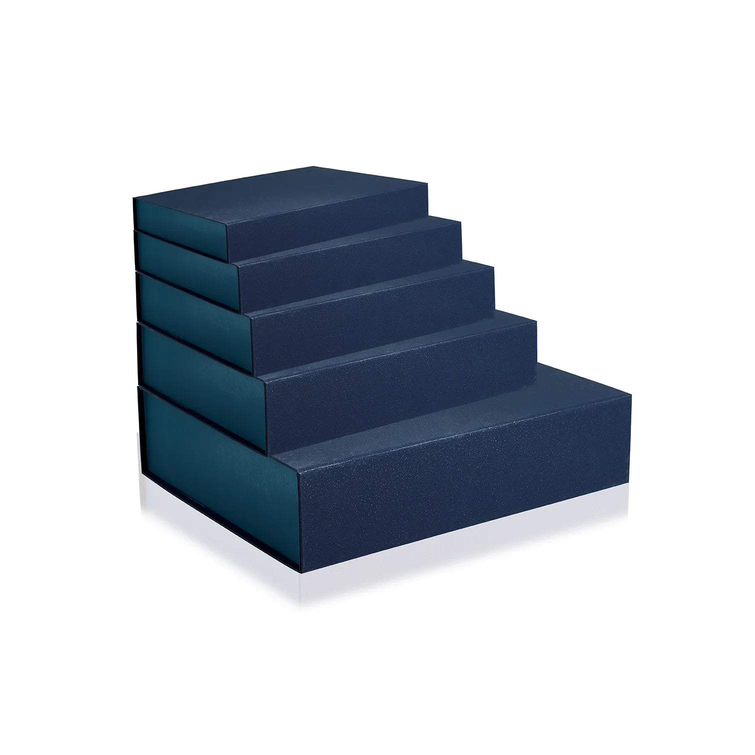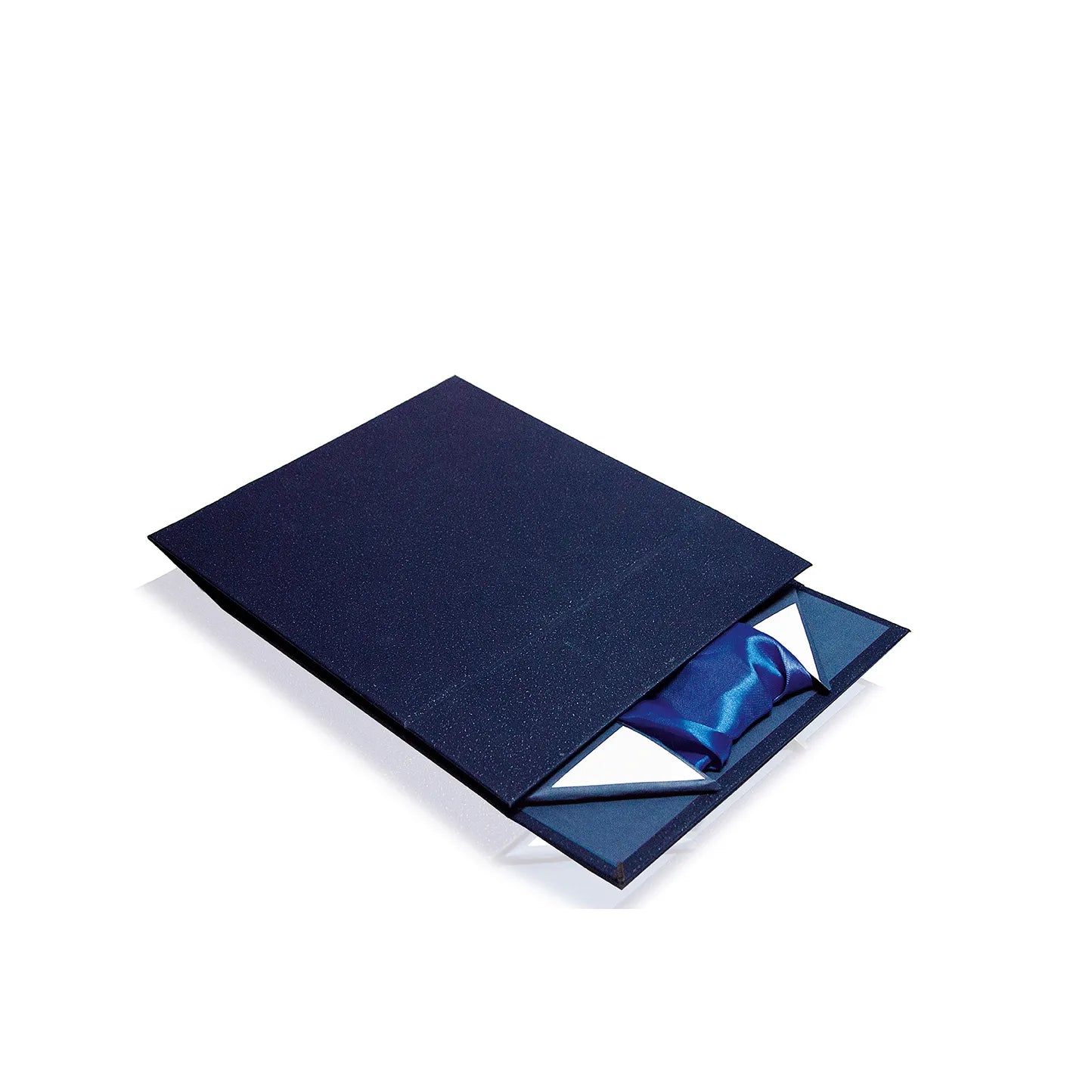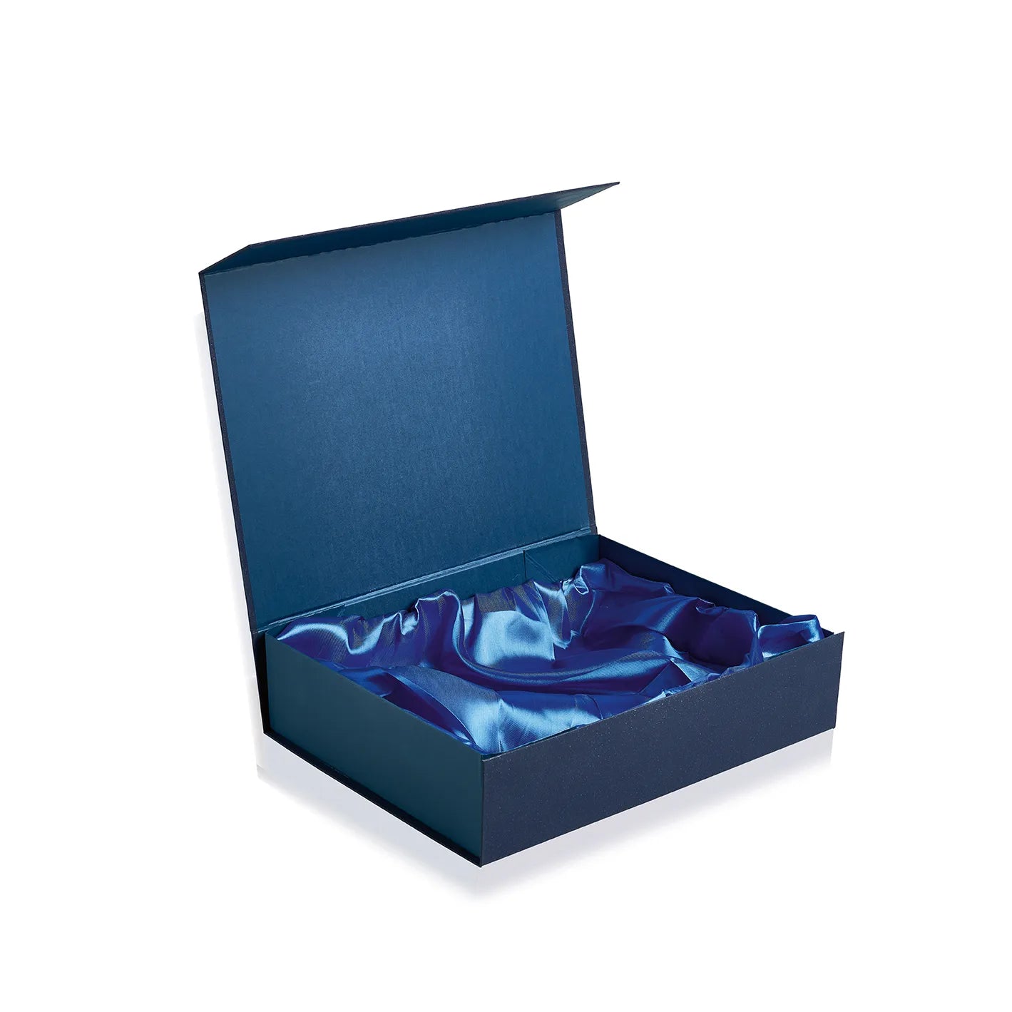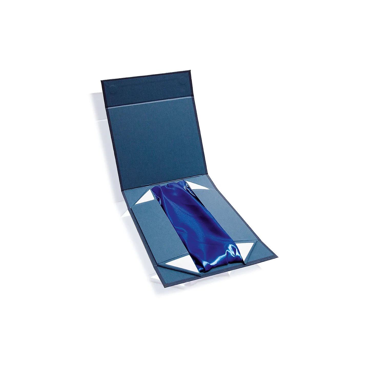 Scatola Automontante Con Angoli Adesivizzati. Esterno In Carta Blu Soft Touch Ed Interno In Raso Blu
