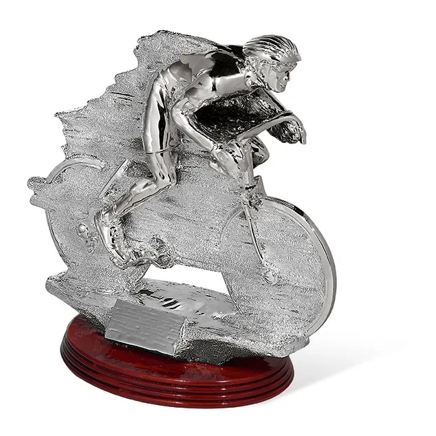 Trofeo In Resina Metallizzato Ciclismo In Finitura Argento Con Base In Resina Radica