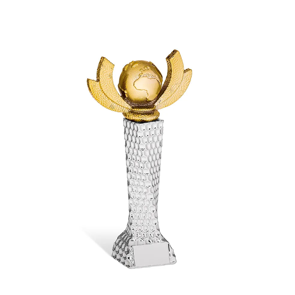 Trofeo In Resina Metallizzato Soggetto Mondo In Finitura Argento E Oro Metallizzata