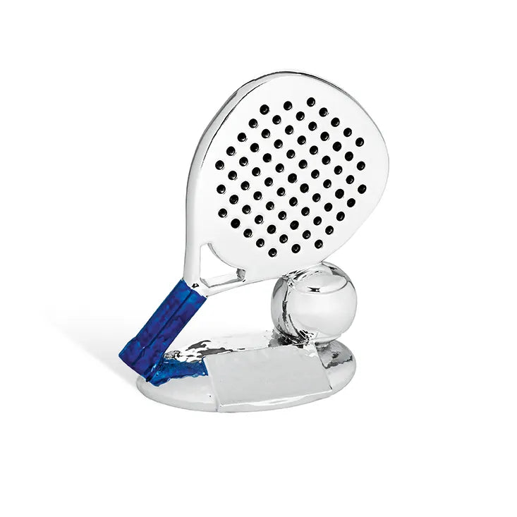 Trofeo In Resina Metallizzato Soggetto Padel In Finitura Argento Metallizzata E Dettaglio Blu