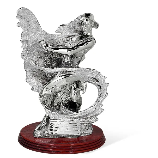 Trofeo In Resina Metallizzato Pesca In Finitura Argento Con Base In Resina Radica