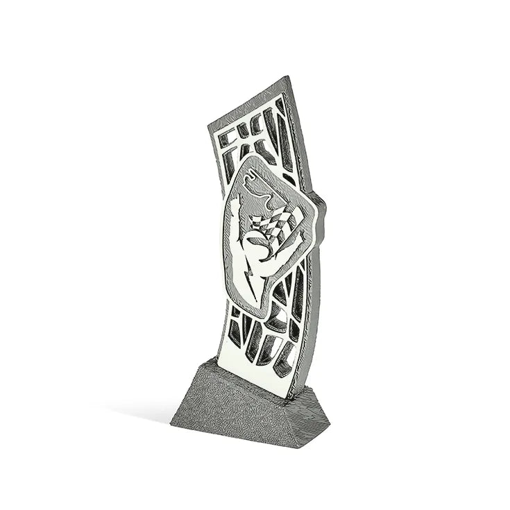 Trofeo In Resina Motorsport In Finitura Canna Di Fucile E Sabbiato Bianco