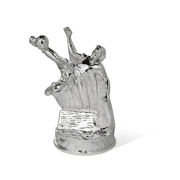 Trofeo In Resina Metallizzato Soggetto Rovesciata Calciatore In Finitura Argento Metallizzata