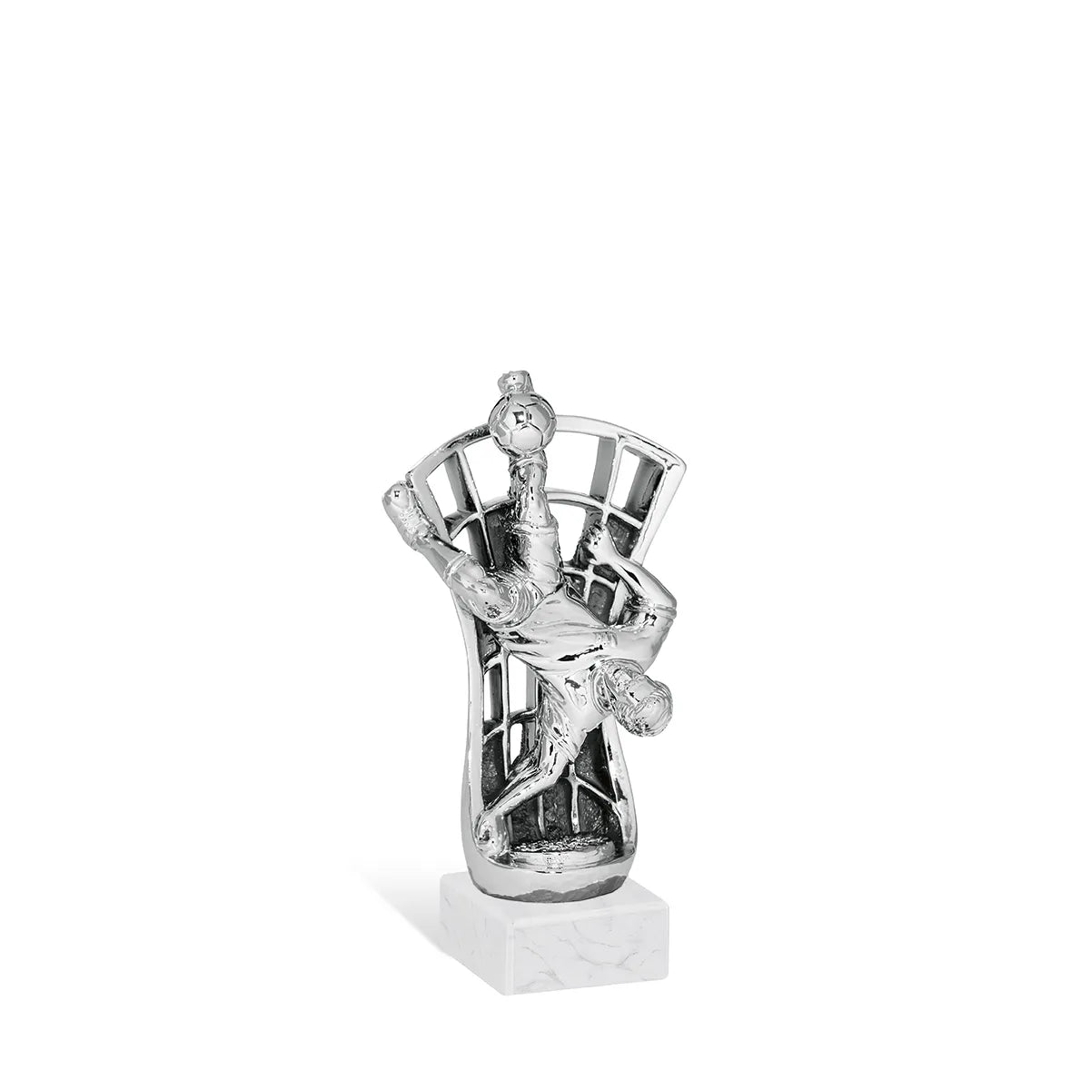 Trofeo In Resina Metallizzato Soggetto Rovesciata Calciatore In Finitura Argento Metallizzata
