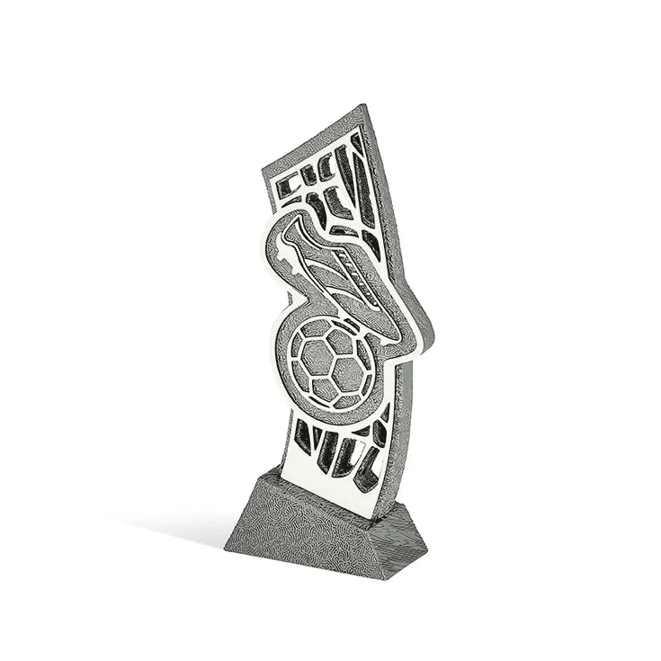 Trofeo In Resina Scarpa In Finitura Canna Di Fucile E Sabbiato Bianco