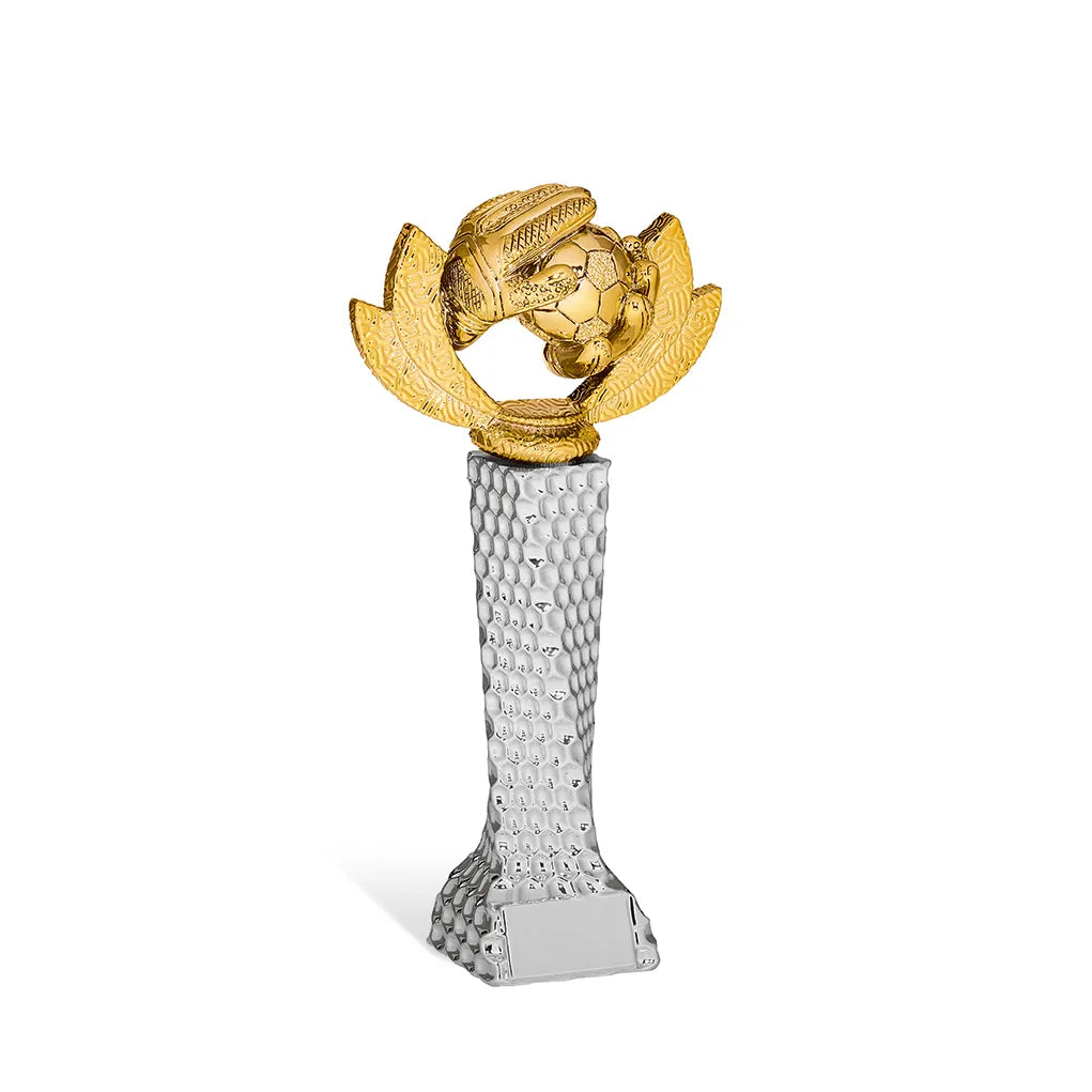 Trofeo In Resina Metallizzato Soggetto Scarpa Calciatore In Finitura Argento E Oro Metallizzata