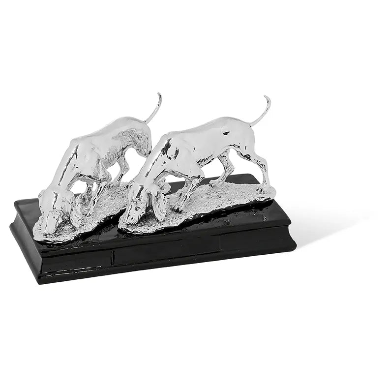 Soggetto In Resina Coppia Segugi Metallizzato Con Base In Resina