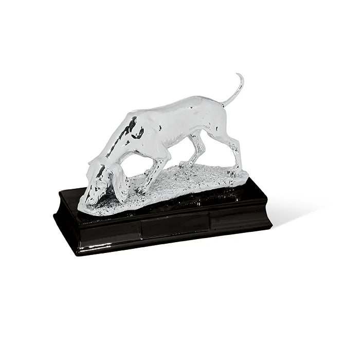 Soggetto In Resina Segugio Metallizzato Con Base In Resina