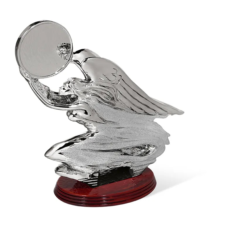 Trofeo In Resina Metallizzato Vittoria In Finitura Argento Con Base In Resina Radica