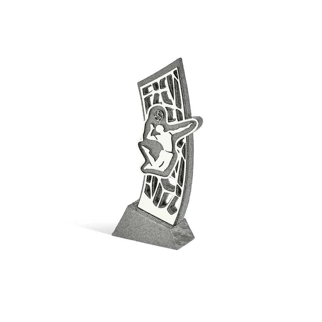 Trofeo In Resina Volley In Finitura Canna Di Fucile E Sabbiato Bianco